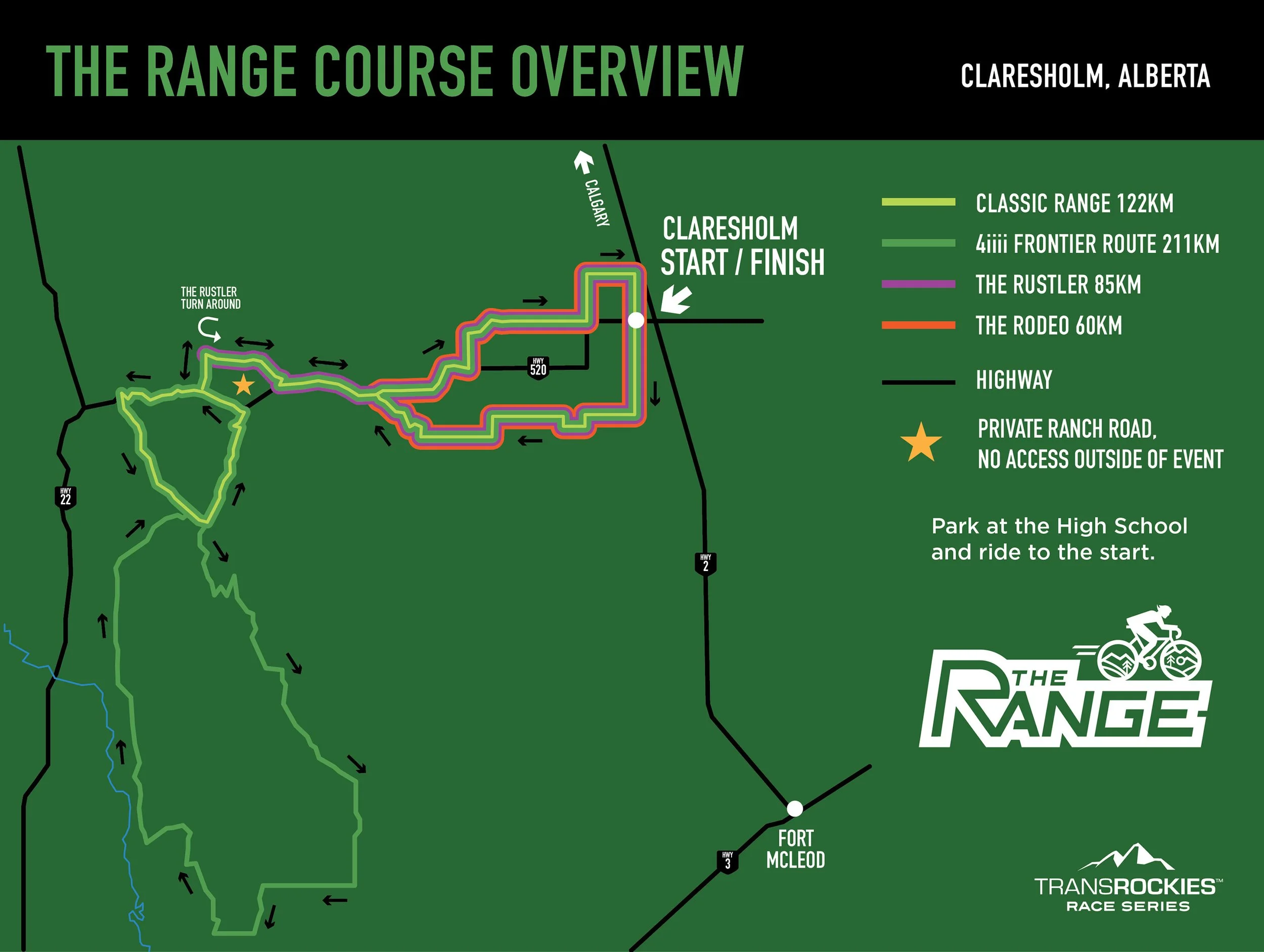 All routes start and finish in Claresholm, AB.